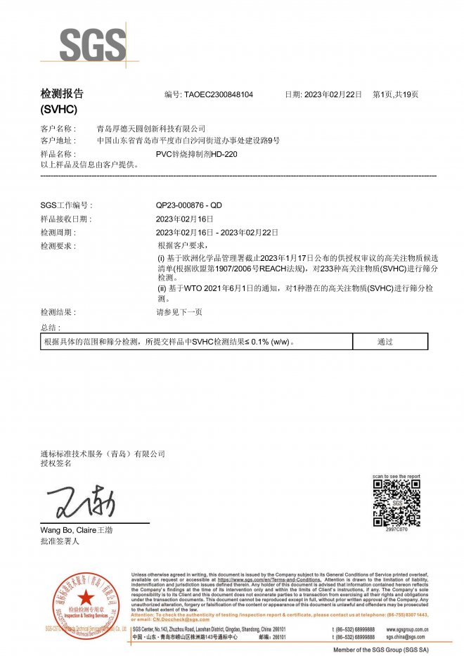 我們的透明鈣鋅熱穩(wěn)定劑(可等量替代有機(jī)錫穩(wěn)定劑)、輔助熱穩(wěn)定劑、PVC 內(nèi)外潤滑劑、PETS等產(chǎn)品都已達(dá)到綠色環(huán)保、無毒無害的衛(wèi)生級標(biāo)準(zhǔn),可以滿足多種領(lǐng)域PVC制品的應(yīng)用需求。產(chǎn)品均符合ROHS、REACH、TSCA標(biāo)準(zhǔn)。其中透明鈣鋅穩(wěn)定劑系列產(chǎn)品,可實(shí)現(xiàn)1:1等量替換有機(jī)錫穩(wěn)定劑與硫醇銻穩(wěn)定劑。